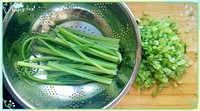 因为男朋友喜欢芹菜的,所以给他单独包了芹菜馅。小白菜的忘记拍了,所以菜谱中偶有芹菜的穿插,望大家谅解,不过步骤都差不多,请大家放心。首先将青菜洗净,锅里烧开水,将青菜放在开水里焯2分钟,捞出后过冷水。然后,将焯好的青菜切碎,攥出多余的水份,放在盆里待用。