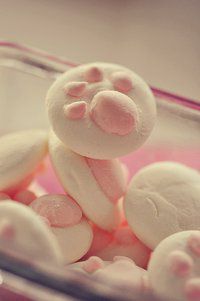 刚做好的棉花糖吃起来很软,放到第二天就比较有韧性了!~泡一杯热可可,丢一个小猫爪进去,看它慢慢融化!~萌的呦!~