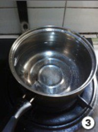 在筷子指示的地方沾一些水,因为这是将被捏拢的地方。再按箭头指示向后环绕,将两头粘在一起,捏紧