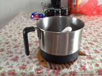 家里自备的小电锅,加热水,大概是锅高度的一半,然后放入浓汤煲。