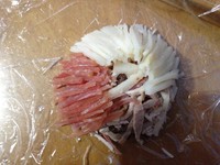 再将刚才的空碗盖在做好的三丝上,如图