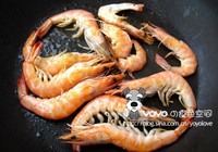 用少量的油煎熟虾,撒黑胡椒粉和盐,盛出备用