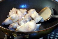 锅里油烧热,将炒好的猪手放入,煸炒至表皮微微发黄盛出