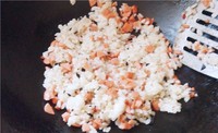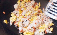 (米饭昨天做了,凉了放进冰箱,第二天炒米饭就好吃。)