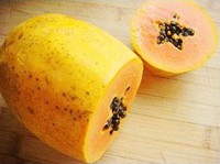 把酸梅水倒入木瓜里,盖保鲜膜放冰箱冷藏即可,吃的时候切块