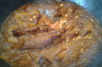 锅内放少许油,排骨下锅煎制,直到金黄焦香。中途加入一次生抽,醋,糖,太干的话,就加入煮姬松茸的汁水。