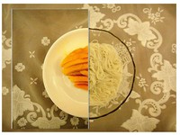 铺3只虾在底面,正面朝下,然后的叶子面也朝下铺(为了美观..)包上蔬菜,中国传统春卷包法,小心卷起。