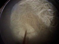 水烧开加入面,在面条煮好后把莴笋尖也扔进去煮了