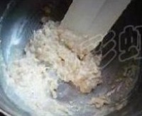 麦片汤种:材料1放入锅中,用橡皮刀拌匀后,小火煮,边煮边搅拌,煮成团状