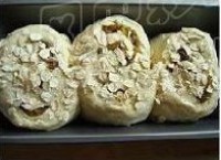 麦片汤种和面团材料混合,后油法揉至完全扩展阶段,基本发酵80分钟(现在天气热,发酵时间会大大缩短),面团滚圆,松弛15分钟