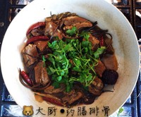 重新换过清水开始炖煮。可以一次性把除了芫荽外的所有材料都丢下去。水沸后转小火,炖至排骨肉开始软烂(40 min?s)。