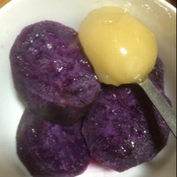 紫薯一个 去皮上锅蒸熟加一勺蜂蜜压成泥