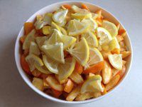 将金桔和柠檬切成小片(也可切丝,或用榨汁机打碎)注意:一定要将柠檬和金桔中的籽去掉,否则成品将会有苦味。