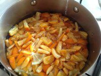 先大火煮约10分钟,再转小火煮约1小时。煮到物体与水基本融合,无大颗粒(除金桔和柠檬的皮)即可出锅