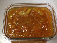 趁热将果酱盛入容器内并放入冰箱。注意:由于果酱刚出锅比较热,请先将果酱装入耐热的容器内,如玻璃容器,并及时放入冰箱。