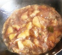先小火,掌握好时间,至地瓜软烂,地瓜时间长很好吃,最后大火收汁,焅干,出锅。(照片是大火前,还有汤,个人感觉汤收干比较好吃)