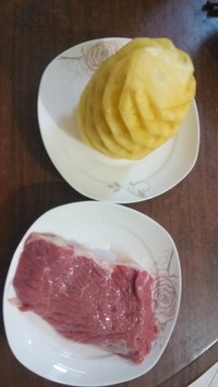 牛肉很新鲜哦!菠萝用盐水泡过了。