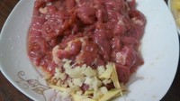 菠萝切小片,大概一厘米厚;牛肉切薄片待用;