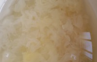 将银耳放入炖盅内,时间设定为2小时,过1小时再加入桂圆、红枣,好的时候加入冰糖。