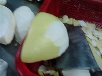 把陷料塞进改成荷包口的柚子皮中,塞满为好.