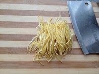 去好白瓤以后,黄皮切丝,丝要均匀的细。