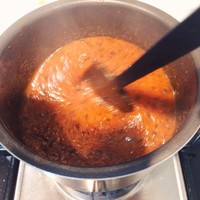 中小火不断搅拌蒸发水分,至黏稠状(视水分和放糖多少决定)。取一小抹在小勺子上,凉的差不多在冷藏里放五分钟,拿出来比较像jelly状了说明好了。