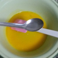 这时我们可以热锅了!蛋白放入蛋黄里,分三次,前两次蛋白放入蛋黄里,最后一次是蛋黄倒入蛋白里,搅拌要从底往上,不要转圈弄。
