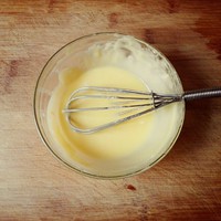 分三次将牛奶糖水倒入,每次都要打到有光泽