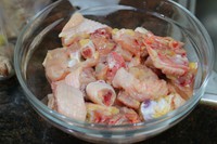 放入少量生粉,少量盐,一点点糖,一点点生抽,一点点生油。