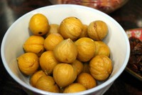 栗子,我买的是圆锥状的,有人叫它油栗。这种又粉又香又糯又好吃。
