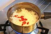 锅里倒一大碗水,煮开后保持小火,倒入酒酿