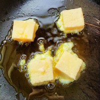 切片面包去掉边,切成小方块备用。切下的面包边不要扔掉