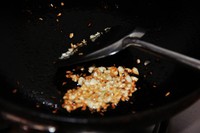 锅里面少放一点油,把蒜切成碎末,丢进锅里,煸到水分都没了,蒜看起来都酥酥脆脆的就好。