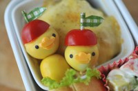放到便当盒里,另一只只做头部,步骤同2-5,牙签过长的话把多余的剪掉
