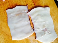处理完外边以后切开鱿鱼,把里边一根软骨抽出来,并洗干净