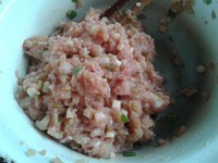 猪肉绞碎或者切肉糜,榨菜丝和杏鲍菇切成细小的沫沫一起放入猪肉,调入料酒,葱花,食盐,鱼露,加一点凉开水搅拌均匀待用
