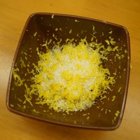 柠檬洗干净,皮擦成柠檬皮屑(不要擦到白色部分,会苦),加入5克糖,混合放置15分钟,让柠檬皮的香味挥发出来。柠檬半切开榨汁备用