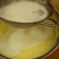 鸡蛋液少量多次地加入到黄油中打发,每次都要混合均匀再放蛋液(一定要少量多次,不然容易造成油水分离)