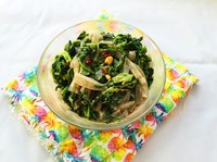 将菠菜、焖子和调好的料倒在一起拌匀就可以吃了