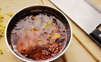 油热后,将滚油倒入容器里,制成熊宝记秘制辣椒油
