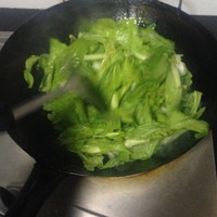 锅里加入一点点油,把青菜放进去炒,炒好后装盘