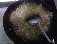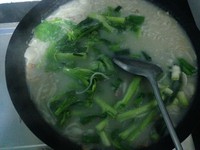 水开了以后加入炒好的青菜和大葱,再加少许盐调味,煮熟后装碗里就可以吃了