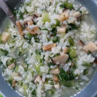 青菜切碎,香菇提前两个小时泡好,洗净切丁,大米煮开后放入锅中,继续煮