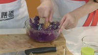 将紫薯去皮切件放入蒸锅中大火蒸25分钟至透.
