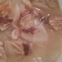 加入萝卜翻炒均匀,加入没过菜的水,大火烧开,十分钟后转中小火十分钟
