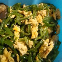 热油煎蛋皮,多点油放入虾皮翻炒后放青椒丝爆炒,撒盐,出锅,简单吧~~