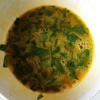将九层塔切碎倒入蛋液中,加少量盐,拌匀。