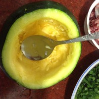 肉馅和盐味精,葱末,姜末,豆粉充分和匀,然后把肉馅胡在瓜壁内侧