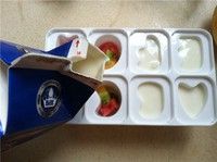 小心的将模具轻轻磕一下,使酸奶中的气泡排出。盖上盖子放冰箱冷冻一天