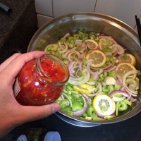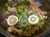将柠檬,西芹,洋葱洗净后淡盐水浸泡半小时